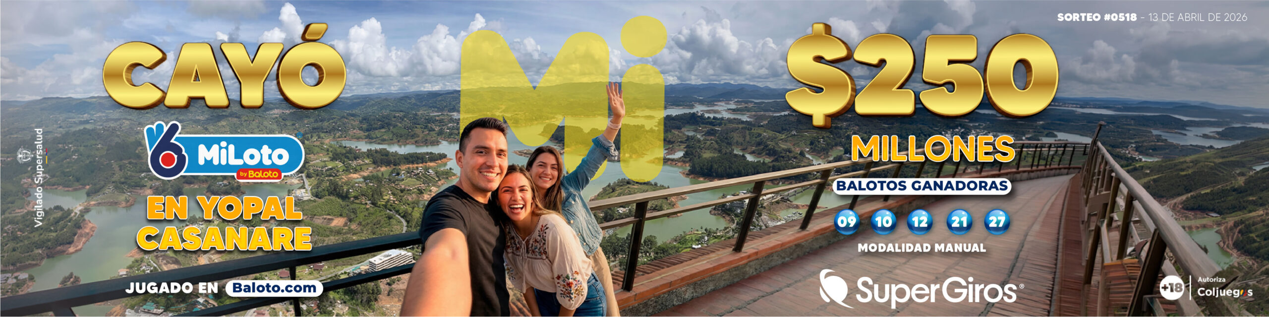 Un colombiano ganó el premio mayor de $250 millones en MiLoto, siendo esta la segunda vez POR SEGUNDA VEZ, CAE EL PREMIO MAYOR DE MILOTO EN YOPALMás informaciónR1131“Recarga con Pasión Tricolor”